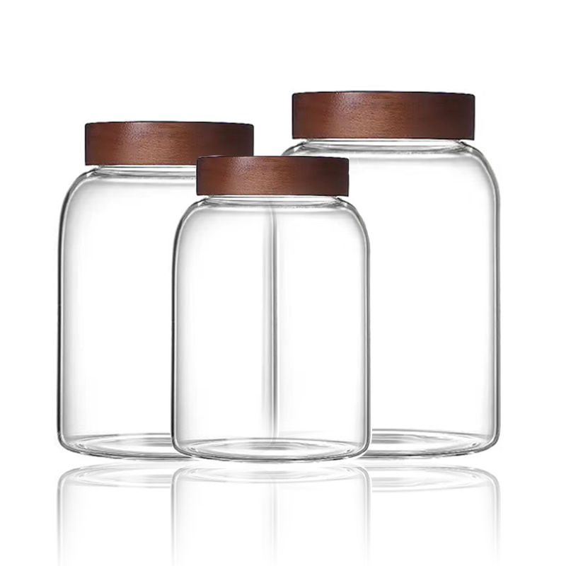 Elegant Clear Glass Jars with Dark Bamboolass Jars With Bamboo Lids For Storage